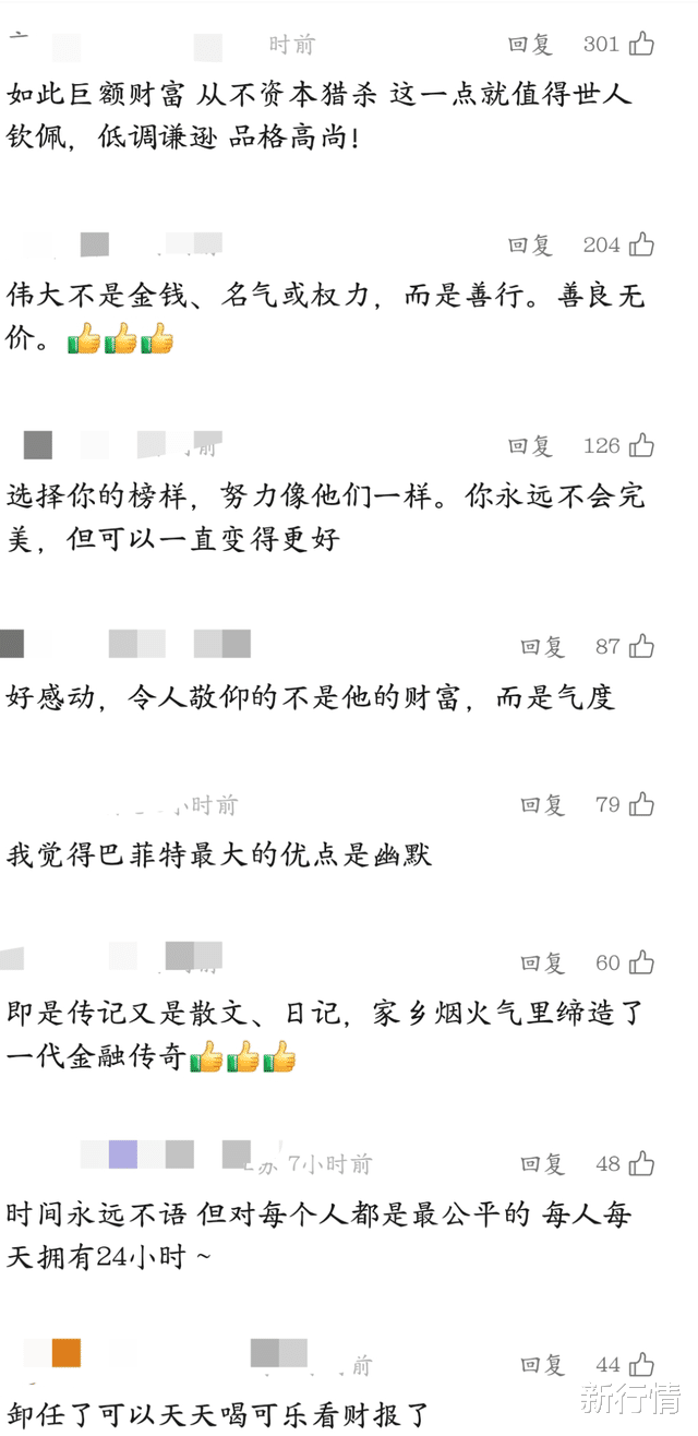 对于巴菲特的这封谢幕信,网友们热议不断,纷纷表示,“如此巨额财富从不资本猎杀这一点就值得世人钦佩,低调谦逊 品格高尚!”“伟大不是金钱、名气或权力,而是善行。善良无价。”“好感动,令人敬仰的不是他的财富,而是气度”“我觉得巴菲特最大的优点是幽默”“卸任了可以天天喝可乐看财报了”……