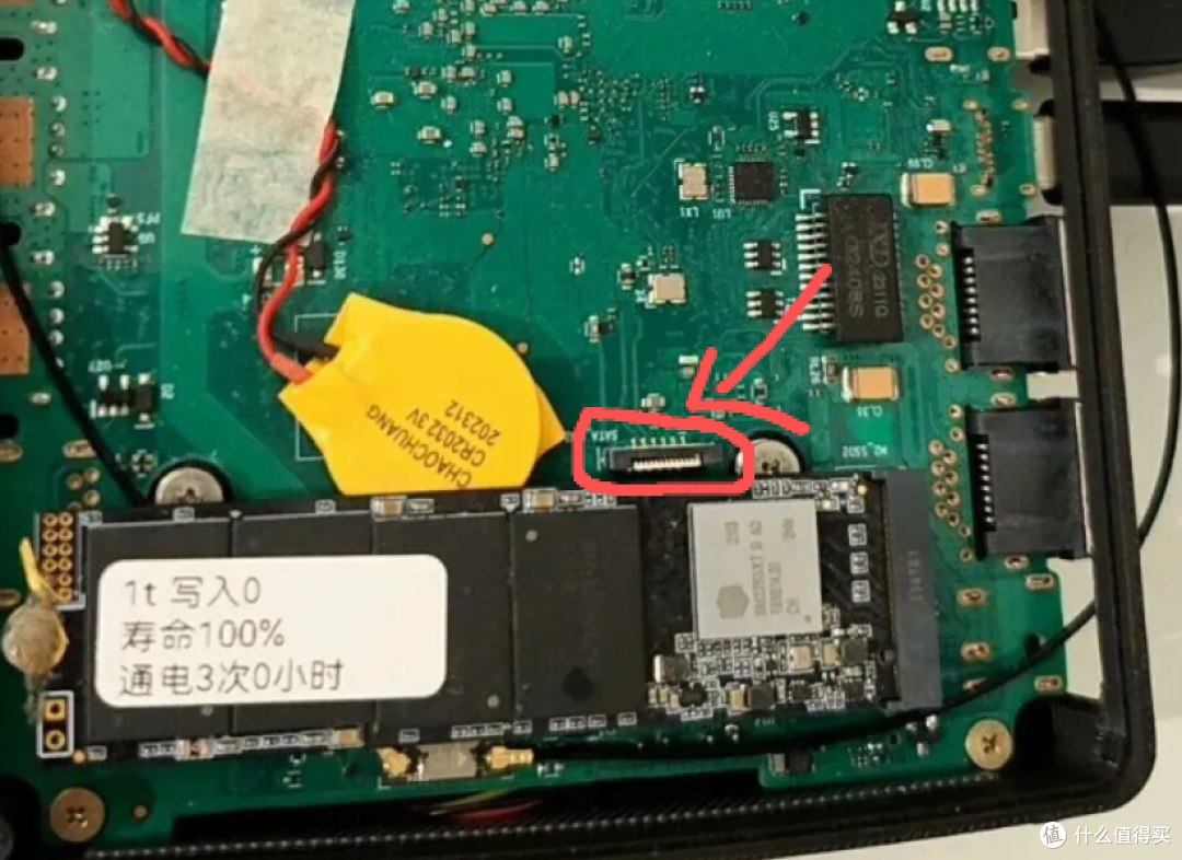 然后呢,这个n305主机背板有硬盘槽,和之前常见的摸具一样,应该是可以加装一个sata的硬盘线,于是乎,又花了10圆。