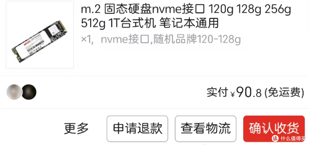 接下来再花90.8圆购入一个120g的系统盘,想想有点吃亏,但是之前120g的好像出了百来圆,现在属于是回购了。这里涉及到一个计算问题。