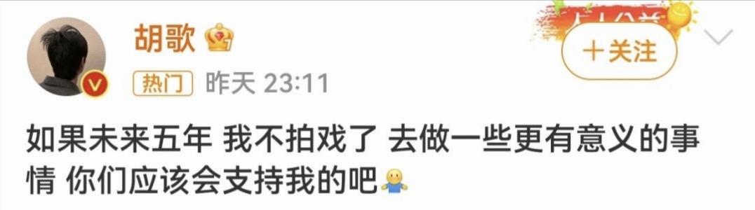 而胡歌虽依旧是“逍遥哥哥”,但作品甚少,上一次拍完《繁花》还说想休息五年。