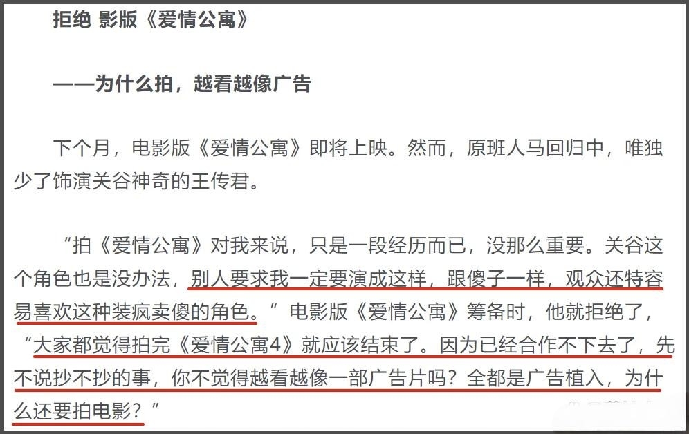 比如《爱情公寓》筹拍电影版时,他拒绝了,说都是广告,没必要继续了。