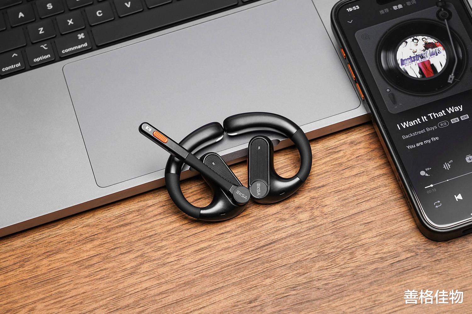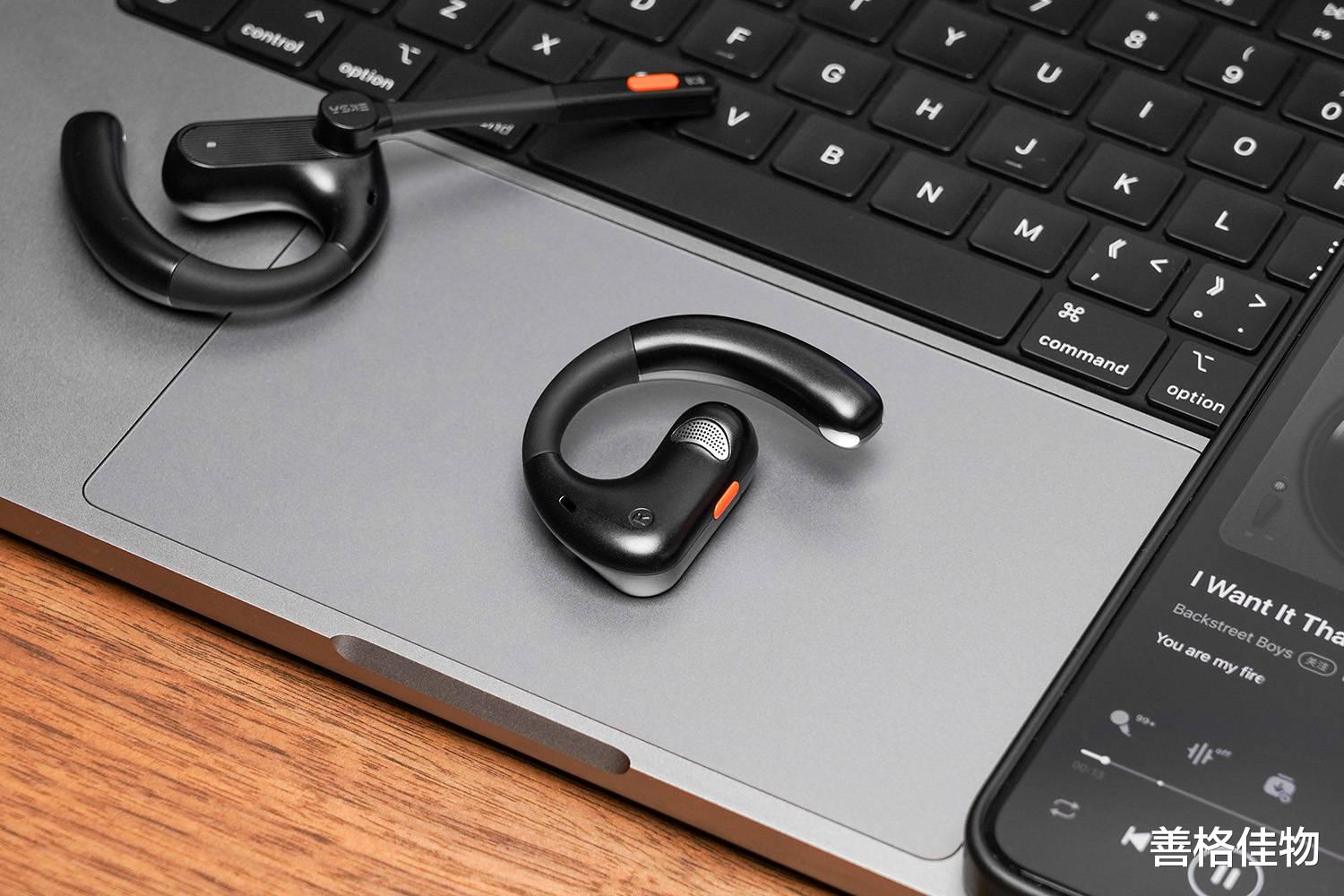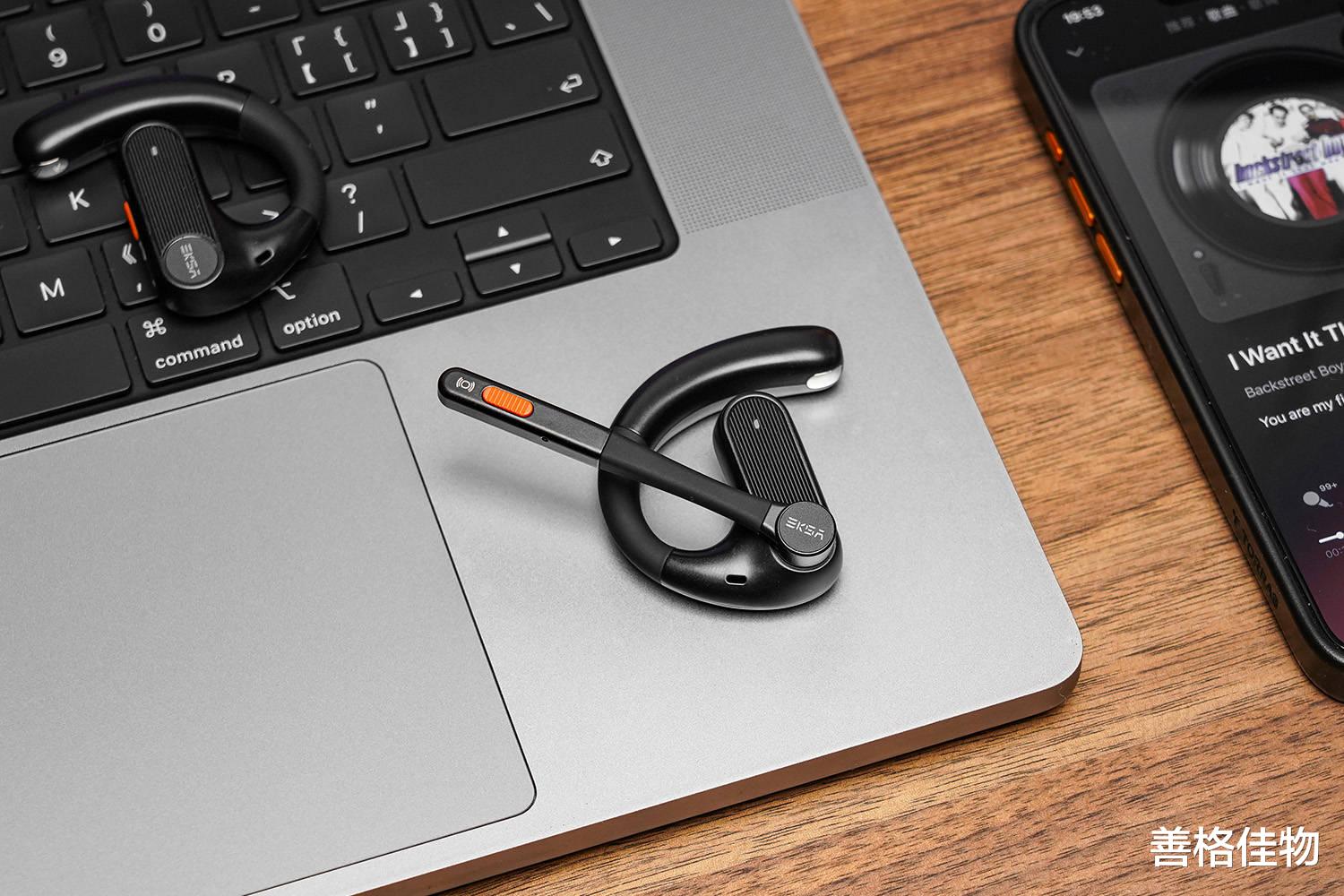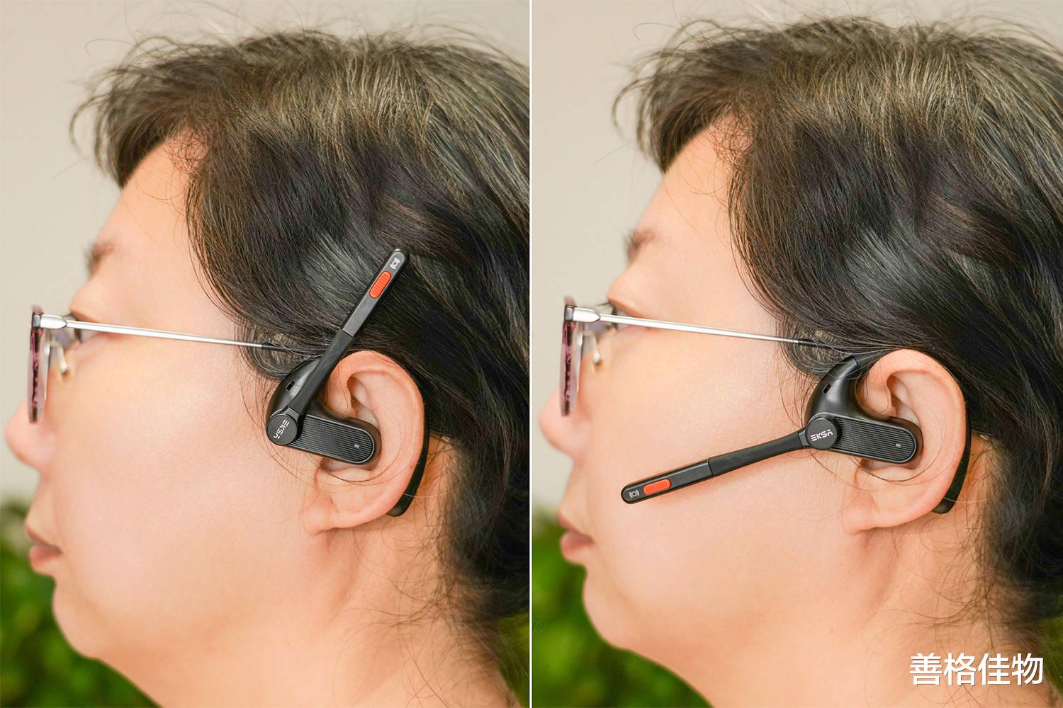 开放式结构可以有效保护耳部健康,顺性可调节耳挂佩戴方式简单,牢固稳定,单耳重量是14.7g,左耳带了一个外置独立的耳麦,虽然略重一些,有17g左右,但也不会影响到舒适度,长时间使用不会有负重感。