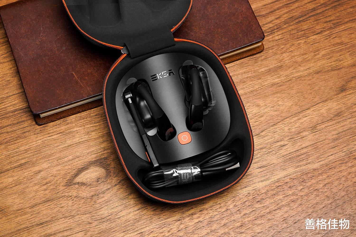 严格意义上来说,开石OpenRock S30是一款偏商务向的开放式蓝牙耳机,自带耳麦,体积稍偏大,桌面式无盖设计充电仓便于耳机取放,对于话务系统用户来说,使用起来非常方便,当然,这种设计也比较适合游戏主播。