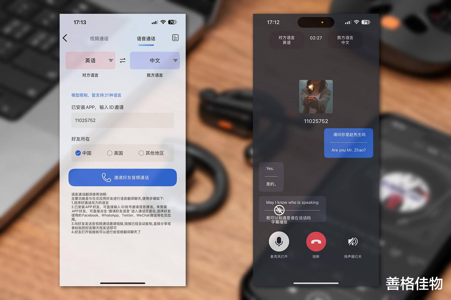 这个模式主要用于两个不同语种的交互,比如我将耳机端设置为中文,手机端设置为英文,我说的中文内容会通过麦克风拾取,并用手机扬声器播放英文翻译,同理,对方说的英文内容会通过手机拾取,并在耳机播放中文,这个功能对于经常出差不同国家人来说,非常实用,无需精通当地语言,就可以进行快捷精准的沟通。