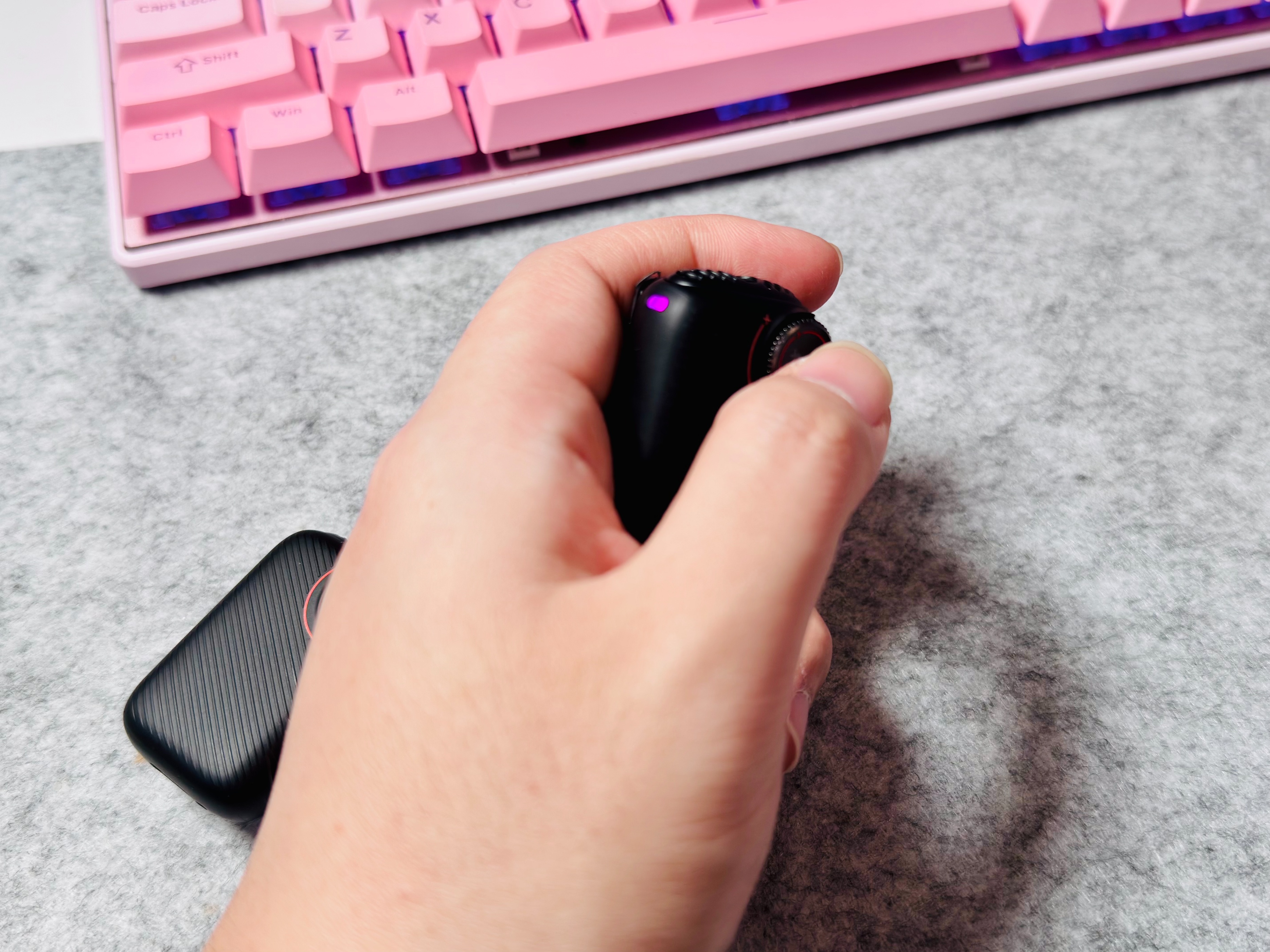 另外麦克风旋钮就能调节录制音量大小,无级调节,开到最大收录音量时,左边紫色灯闪烁,各位记好咯~
