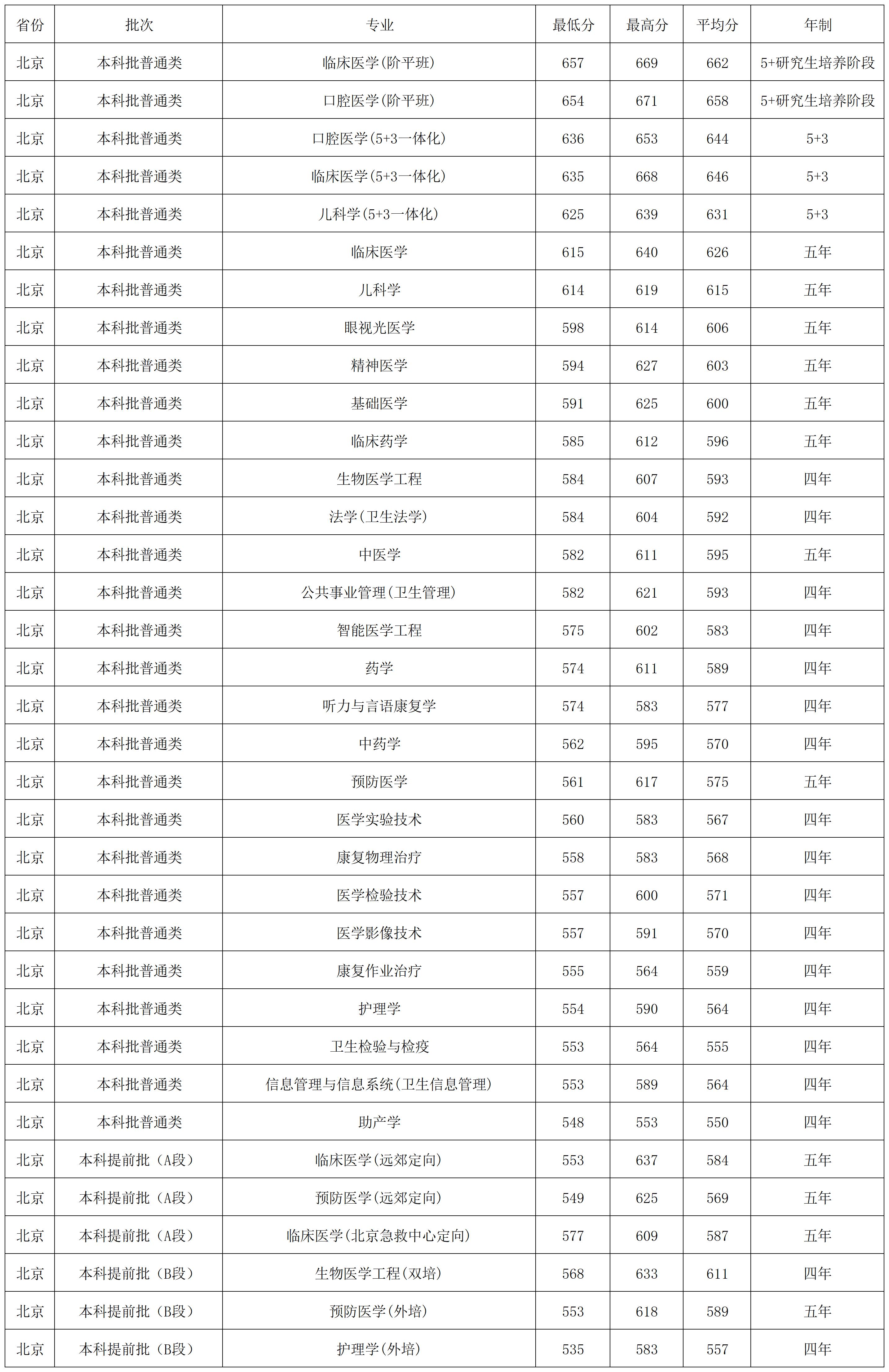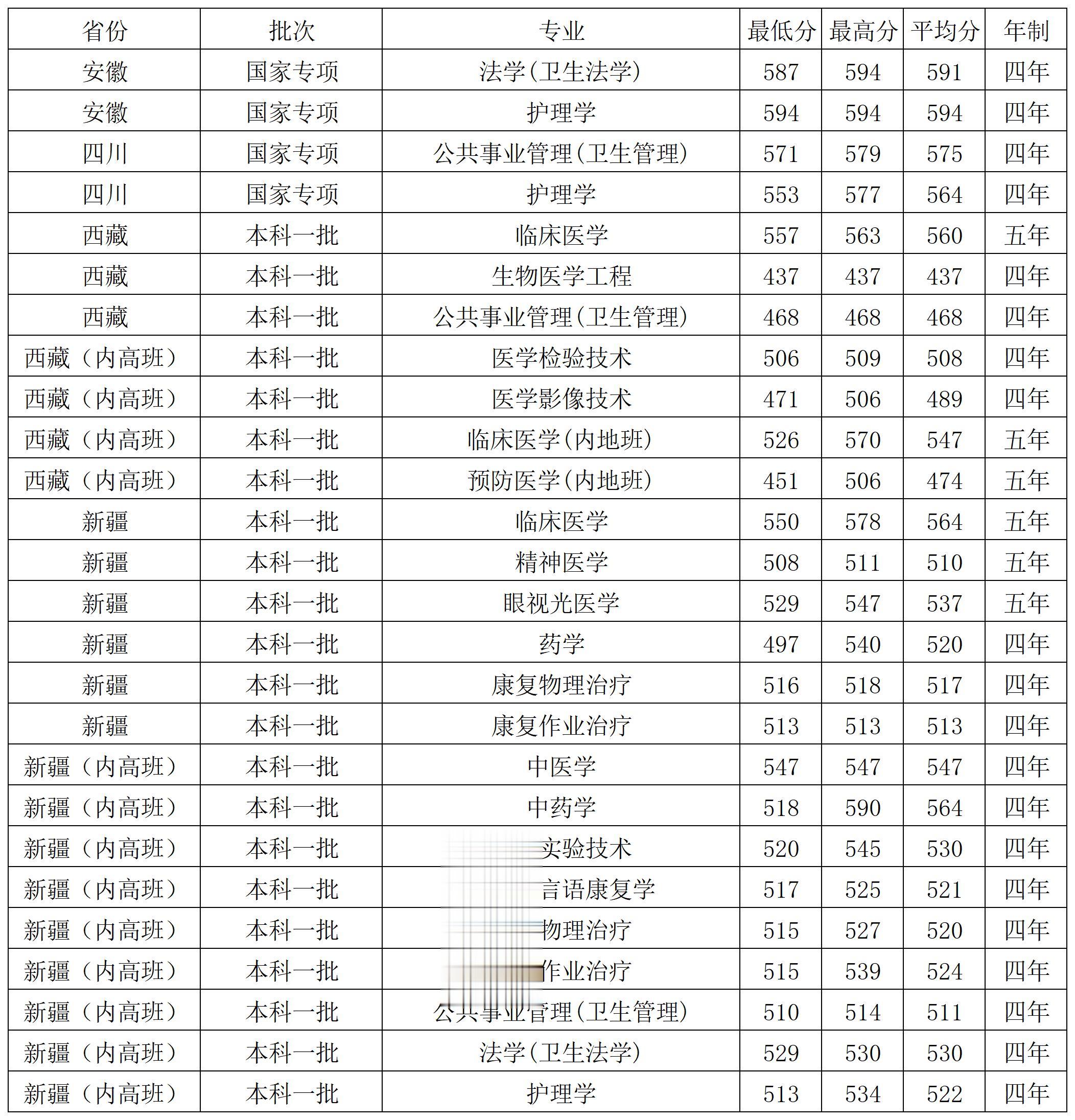 首都医科大学2025年西藏、新疆各专业录取分数线、国家专项在各省录取分数线