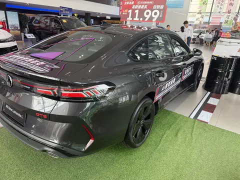 从外观来看,新车前脸采用了贯穿式 LED 灯带,与可发光的大众车标相得益彰,夜间点亮时,辨识度瞬间拉满。同时,前格栅得以保留,内部运用 L 形镀铬装饰元素填充,两侧还保留了运动化导流槽设计。而 GTS 版本更是独具特色,采用专属的熏黑蜂窝格栅,进一步强化了其性能车的氛围。车身尺寸方面,凌渡 L 拥有 4791mm 的修长车身以及 2731mm 的轴距,营造出宽体低趴的视觉效果。标志性的无边框车门得以延续,搭配溜背式车顶弧线与笔直上扬的腰线,不仅保证了空气动力学性能,更彰显出轿跑的独特气质。基础版车型搭载 205/55 R17 铝合金轮毂,而 GTS 版本则升级为 225/40 R19 黑化运动轮毂,再加上红色制动卡钳,运动气息扑面而来。车尾设计简洁大方,贯穿式 LED 尾灯与前脸相互呼应,车牌区域的凹陷型面增强了视觉层次感。掀背式尾门设计更是兼顾了美观与实用性,GTS 版本还配备了小型扰流板与双边共两出排气布局,将运动潜能发挥到极致。