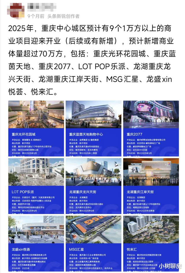 年初有媒体总结了今年重庆将要开业的九大商业,目前已经有光环花园城、蓝茵天地、LOT POP乐派、龙兴天街、江岸天街、龙盛xin悦荟相继开业了。