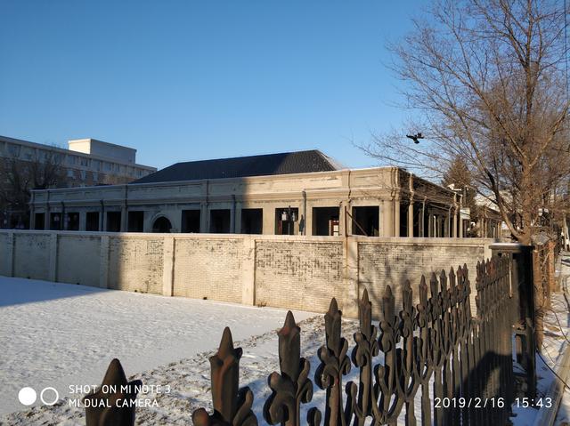 接下来就是这座二层小楼了。这里曾经是溥仪的御用照相馆。好多历史照片都是出自于这里。这座建筑是经过修缮的。修缮中坚持修旧如旧的原则。保留了建筑正面装饰顶部两侧的雕像。