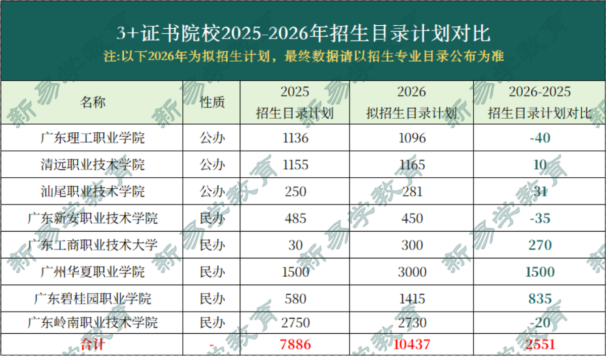 目前已有多所专科院校公布了2026年“3+证书”拟招生专业和计划,其他院校也将陆续发布相关信息,请大家持续关注新易学。