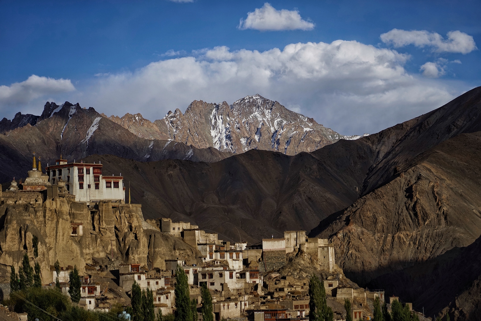 拉达克的地理位置独特,位于喜马拉雅山脉的雨影区,其气候干燥、阳光充足。这使得这里的地貌变得十分奇特,赤裸裸的山脉、深邃的峡谷,宛如外星球的地貌令人叹为观止。而在这些原始而荒凉的自然景观中,藏族人民以他们的智慧和勇气,建立起了一个个生机勃勃的村落。