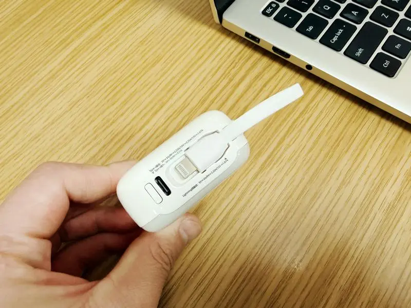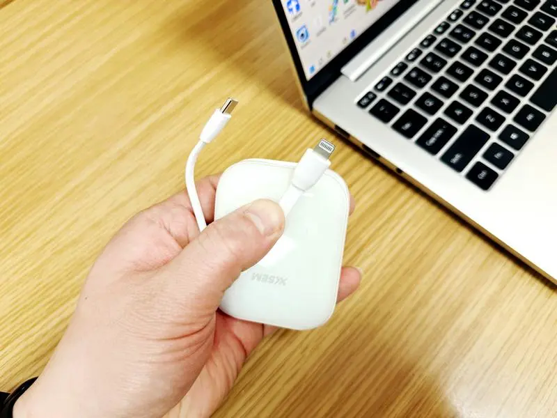 西圣PB-S便携移动电源自带双线收纳,机身侧面内置Lightning和Type-C两根充电线,轻拉即可拉出使用,不用时直接收回机身侧面,15cm的长度不仅方便使用,还避免了线材的缠绕。