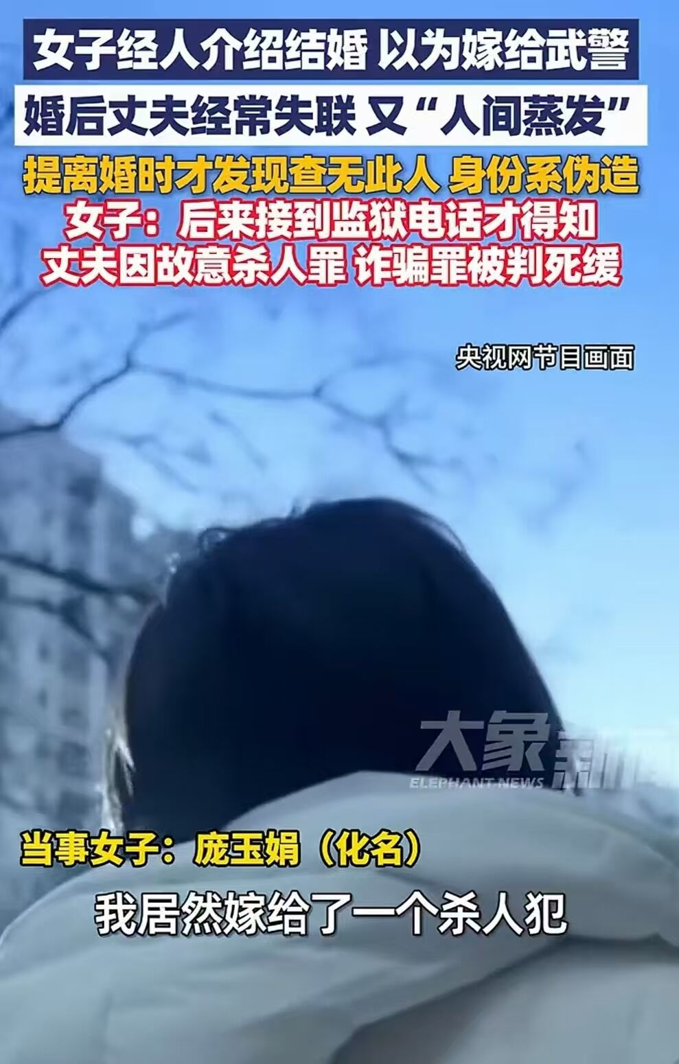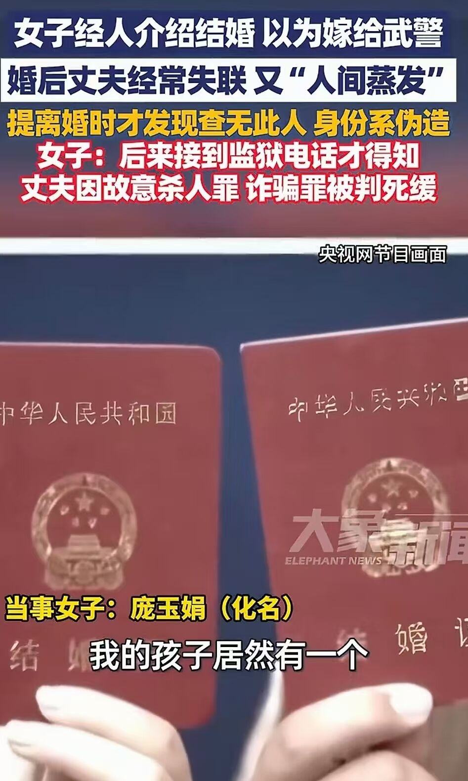 “真的是天塌了!” 女子满心欢喜以为嫁给了保家卫国的 “武警上校”,到头来却发现枕边人竟是身负命案的在逃杀人犯!这犹如一场噩梦,在河北石家庄真实上演,直到一通来自监狱的电话,才揭开了这个隐瞒多年的惊天骗局!