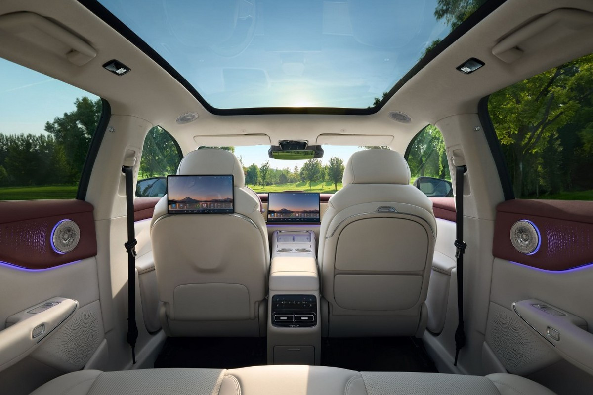 其他配置还包括:玻璃车顶、所有座椅的加热、通风和按摩功能、带增强现实功能的投影显示屏、一套带有20个扬声器的全新音响系统(包括位于驾驶座头枕内的扬声器)、折叠桌(内置于前排座椅靠背)以及乘客个人平板电脑(安装在座椅靠背上)。