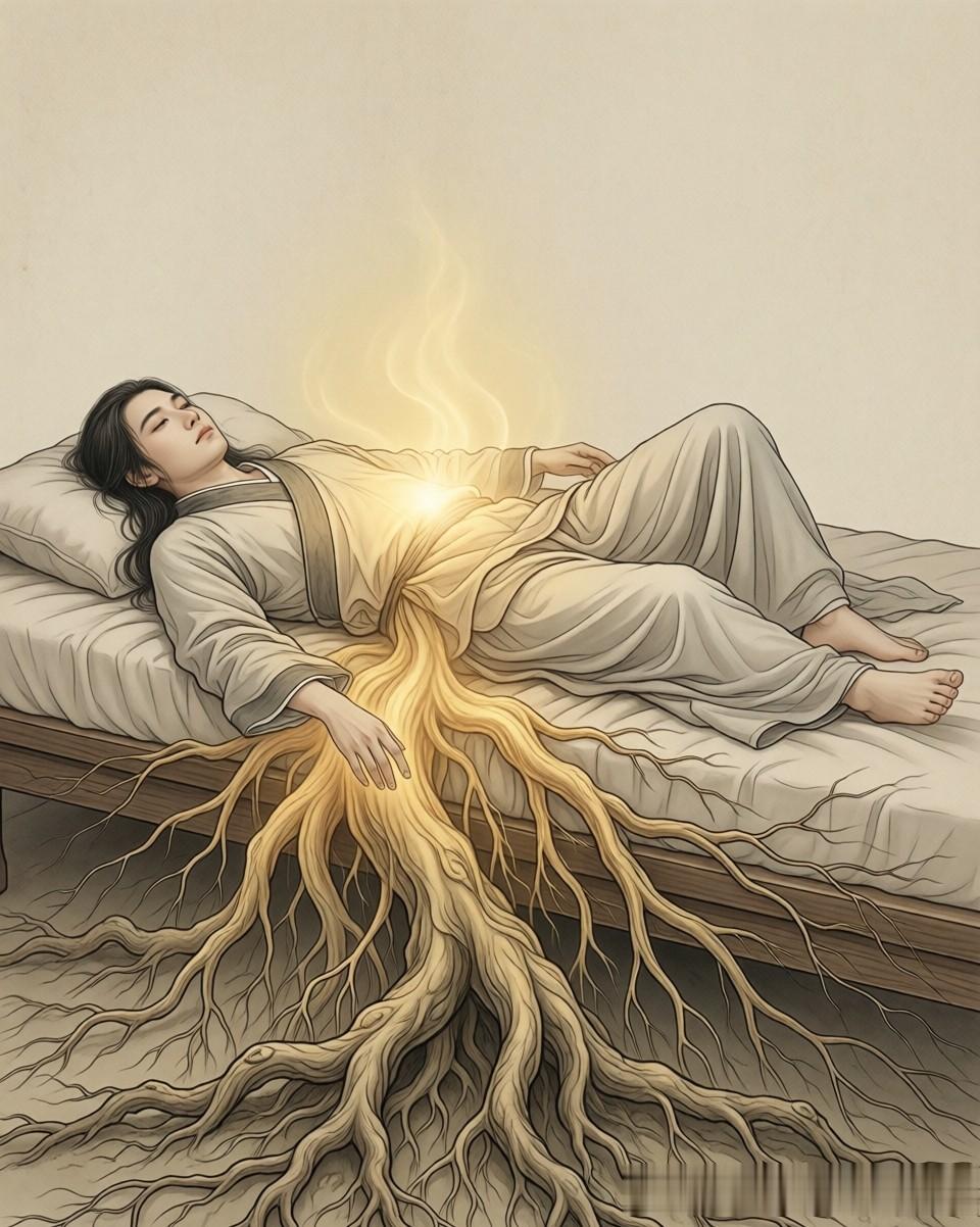 · 这里头的门道:紧张焦虑时,气是往上浮的。这个姿势和观想,是在物理和心理上双重引导 “气沉丹田” 。根扎稳了,神就稳了,那些飘忽的念头自然就少了。