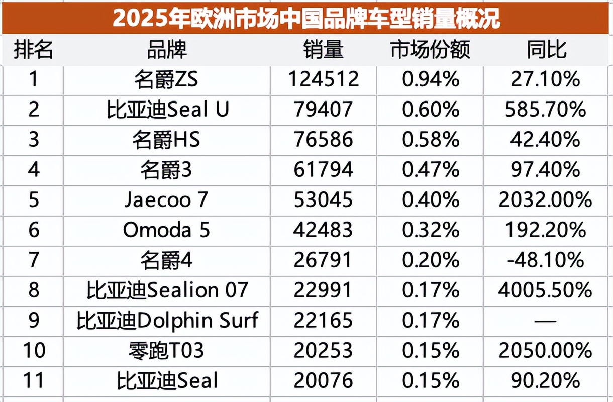 今天我们就盘点一下欧洲市场的数据,看看2025年中国品牌啃下了当地多少市场份额。