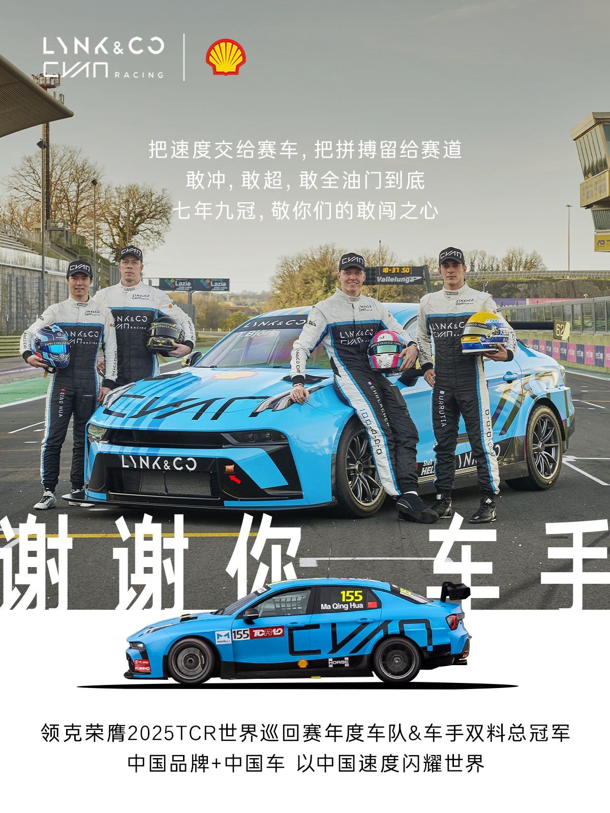 未来,当全华班的赛车驰骋在耐力赛的赛道上,当更多中国车手站上世界领奖台,当汽车运动成为街头巷尾的热门话题,我们终将看到,领克所播种的种子,已成长为中国汽车运动的参天大树。而这份对速度与梦想的执着,也将继续引领中国汽车,驶向更遥远的星辰大海。