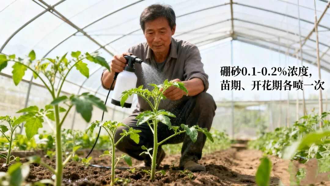 蔬菜类使用硼肥,主要是以喷的方式为主要。硼砂溶液浓度在0.1-0.2%即可,西红柿在苗期和开花期各盆一次即可,土豆也是在花蕾期和初花期各喷一次即可。其次一些蔬菜基本也是在生长前期喷,效果会更好一些。