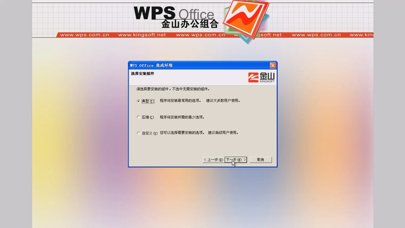 其“四大金刚”组件名称分别为:金山文字处理、金山电子表格、金山电子幻灯、金山电子邮件。