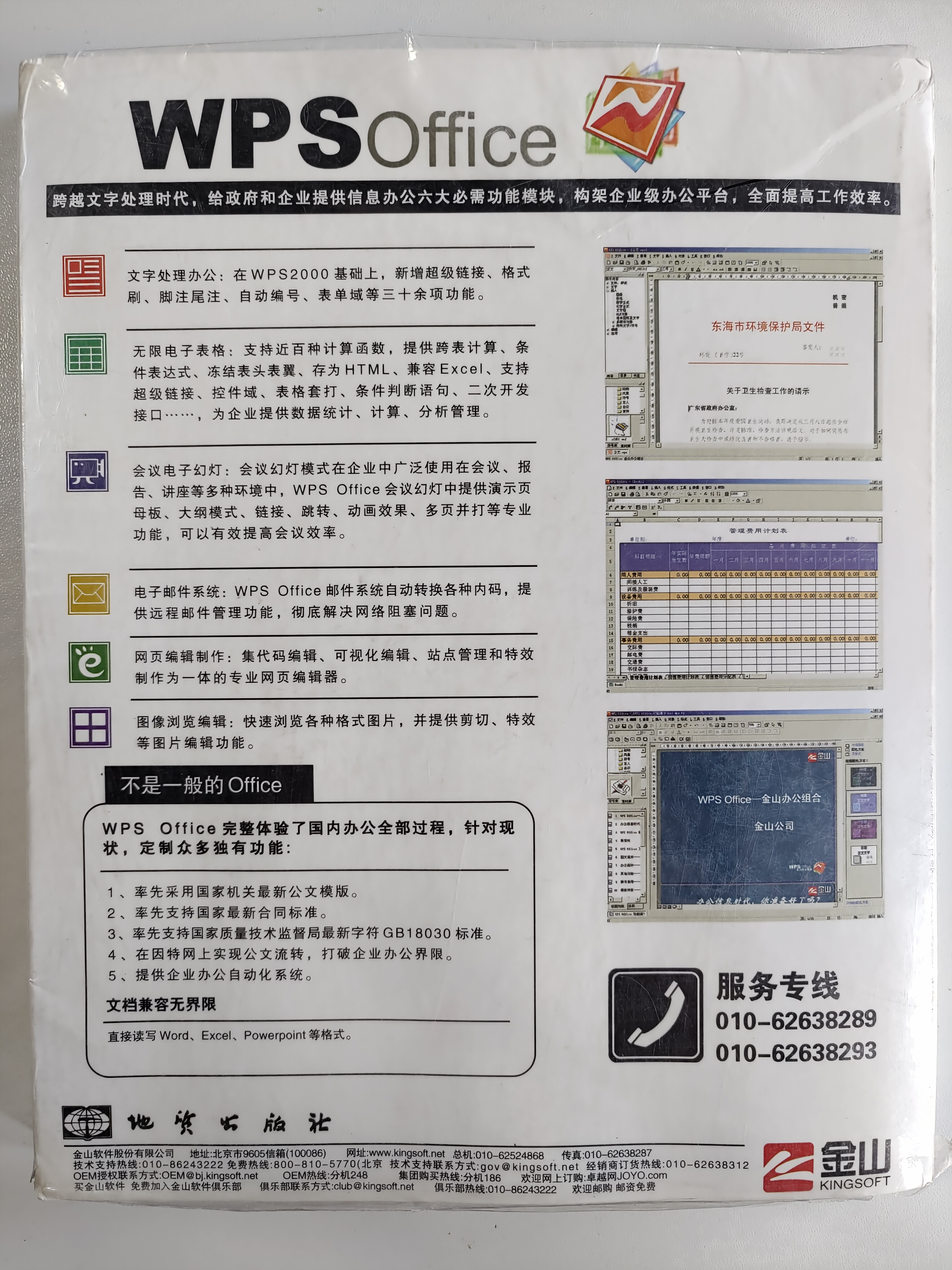 为了凸显它的用途,金山在各处都注明了“WPS Office金山办公组合”,哪怕没有2001,也要有“金山办公组合”。