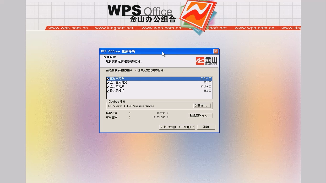 ▲安装组件:主程序、图片浏览、素材库、特大字打印。