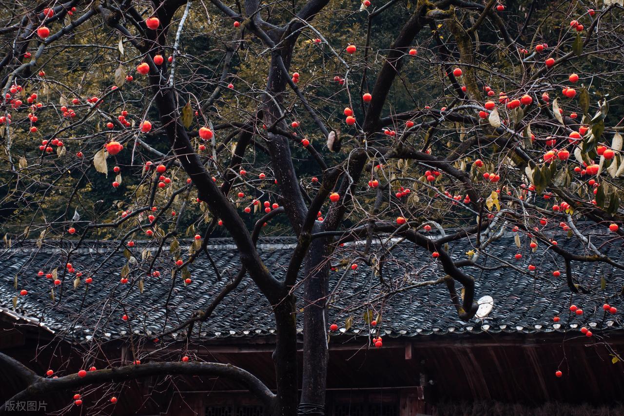 深秋时节,满树红柿子像挂着灯笼,看着就喜庆,“柿” 还谐音 “事”,寓意 “事事如意”。