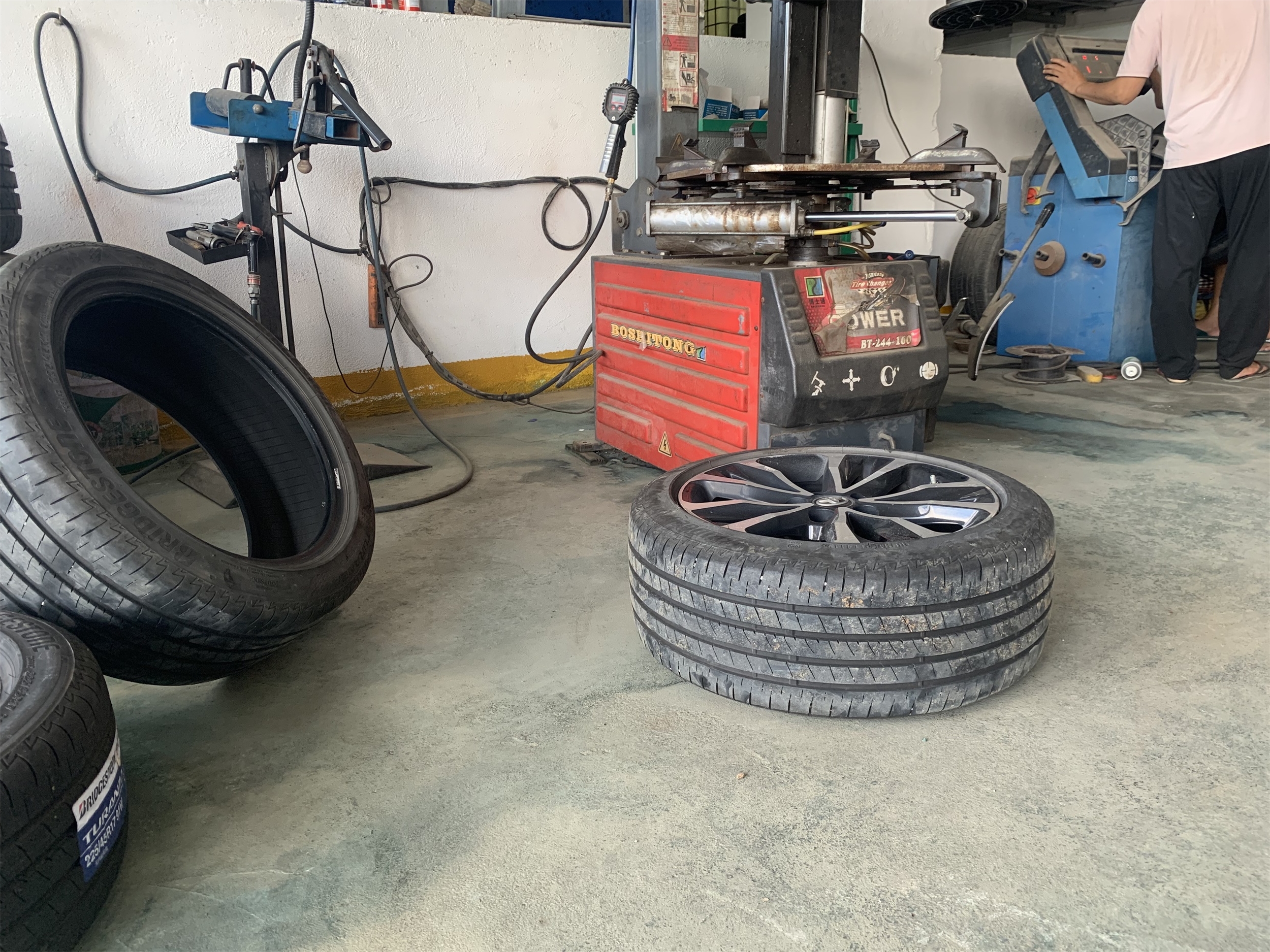 结果不打还能用,打涨了以后,第二天我就看到那个轮胎瘪了。