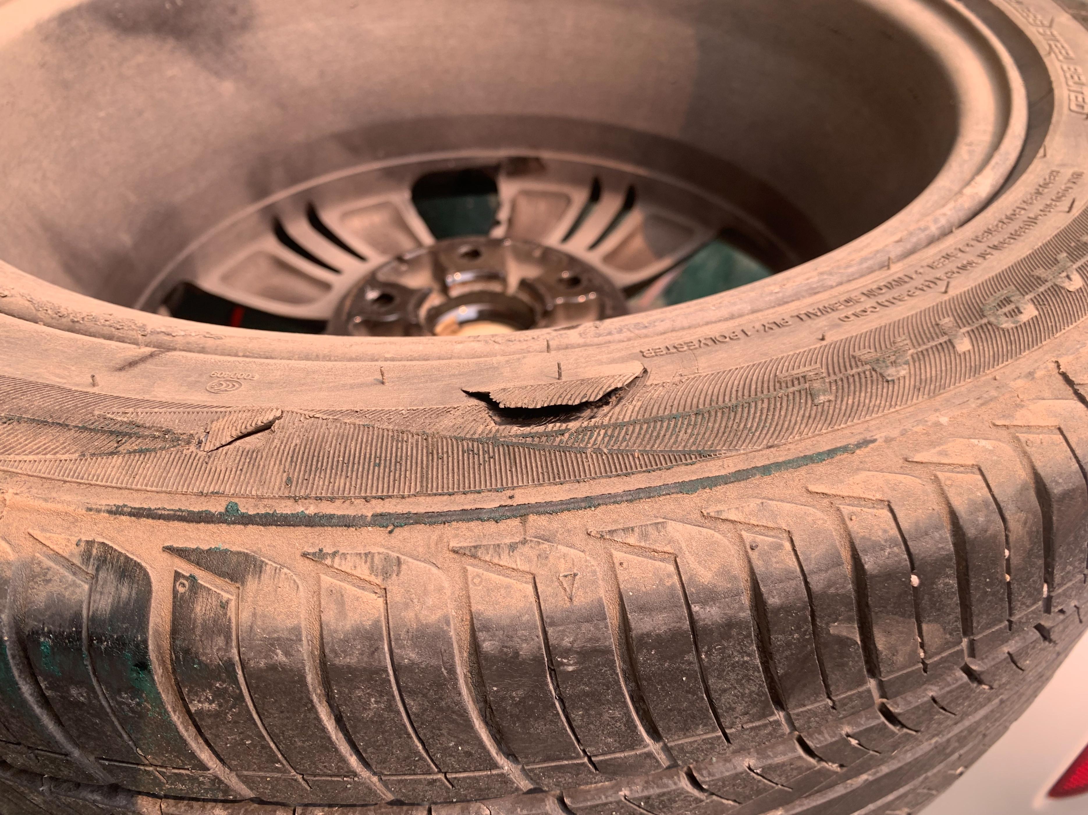 来个老司机说说,轮胎被割成这样,还能不能继续跑高速?