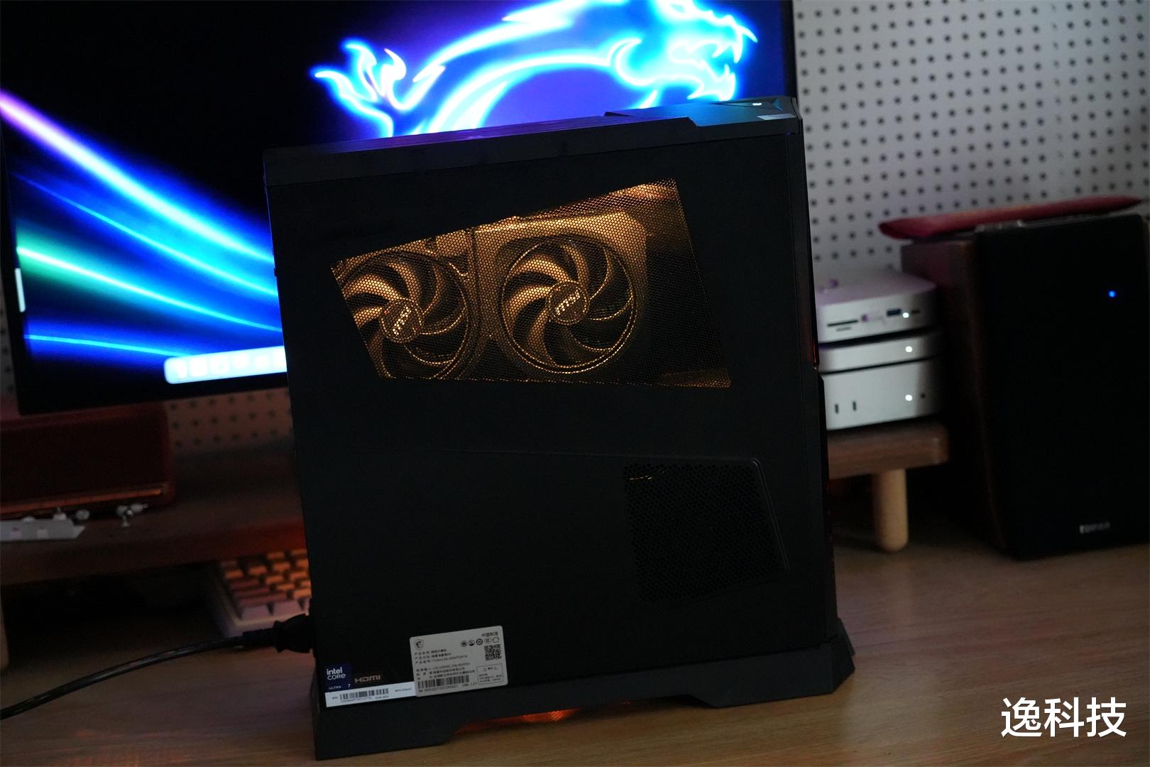 机箱尾部则安装了大面积的梯形金属格栅排风口,格栅上布满了蜂窝状的密集通风孔,这种结构可以显著增强导风效果,让机箱内的热空气快速排出。