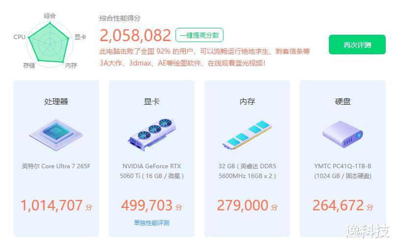 这款主机为微星海皇戟 AS主机顶配版本,处理器:采用Intel® Core™ Ultra 7 265F,具备 20 核 20 线程(8 个性能核 + 12 个能效核),性能核基础频率 2.4GHz,睿频可达 5.3GHz,能效核基础频率 1.8GHz,睿频 4.6GHz。该处理器集成 Intel AI Boost NPU,支持多种人工智能软件框架,适合多任务处理和 AI 应用。此外,搭载的是微星定制的B860主板,英睿达32G DDR5内存、1T SSD存储和微星RTX5060ti显卡。