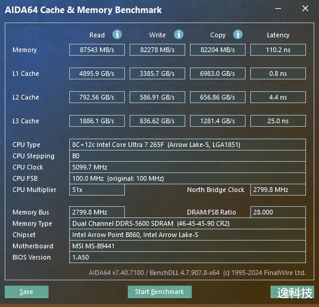 双通道 DDR5 - 5600 32GB 内存运行在时序 CL46 - 45 - 45 - 90、电压 1.1V 的设定下,展现出相当不错的性能。经实测,其读取速度达到 87543MB/s,写入速度为82278MB/s,复制速度是82204MB/s,延迟为110.2ns。这样的性能表现,足以在游戏运行过程中提供流畅的体验,满足日常办公。