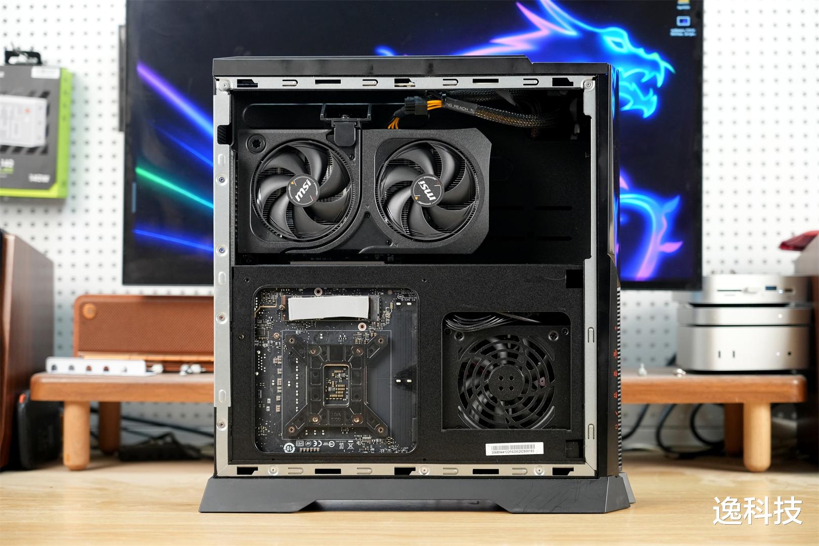 这款主机所使用的主板为微星专为特定需求打造的 ITX 板型 B860。其配备的下压式 CPU 散热器能够形成持续的气流,可充分满足散热方面的需求。在主板正面 PCH 上方,设有直接连接 CPU 的 PCIe 5.0 M.2 接口,并且预装了固定旋钮,玩家无需借助工具就能轻松加装 SSD。