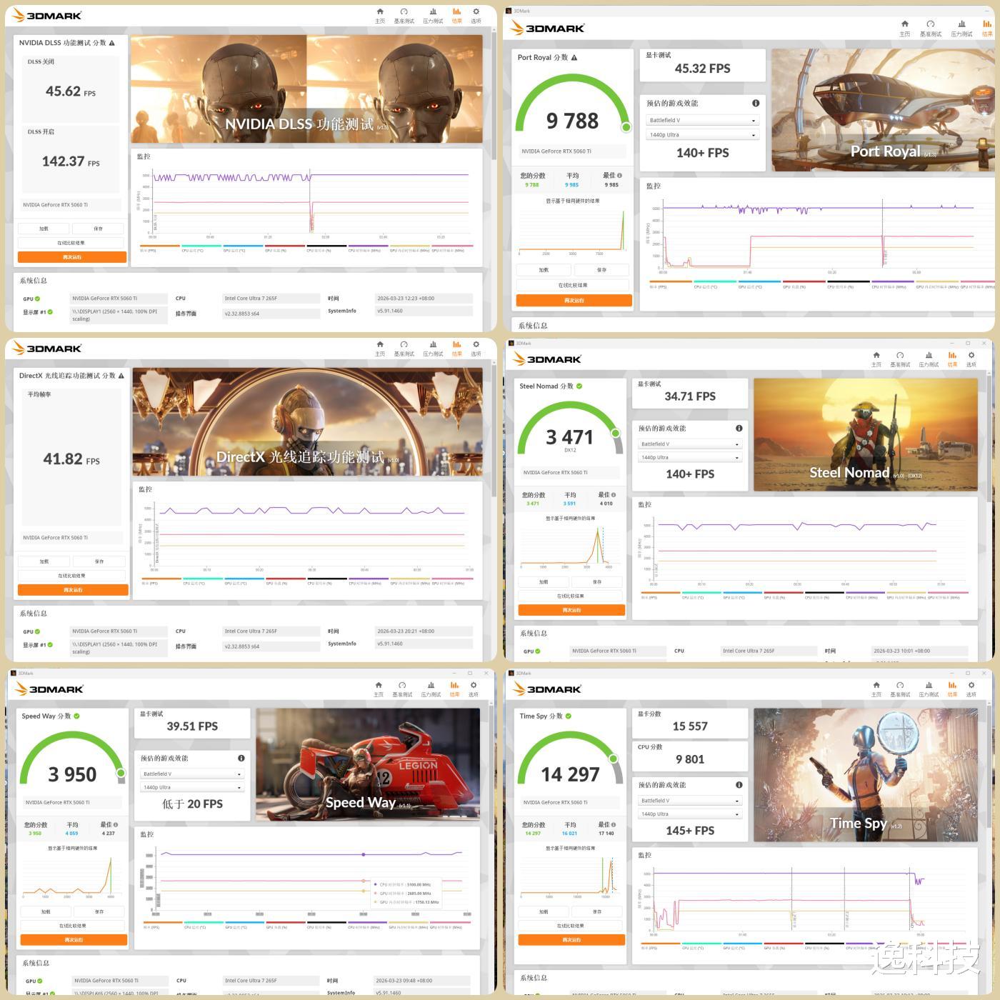 来看看这块微星RTX 5060 Ti 16G在3DMARK显卡基准测试中的表现如何。