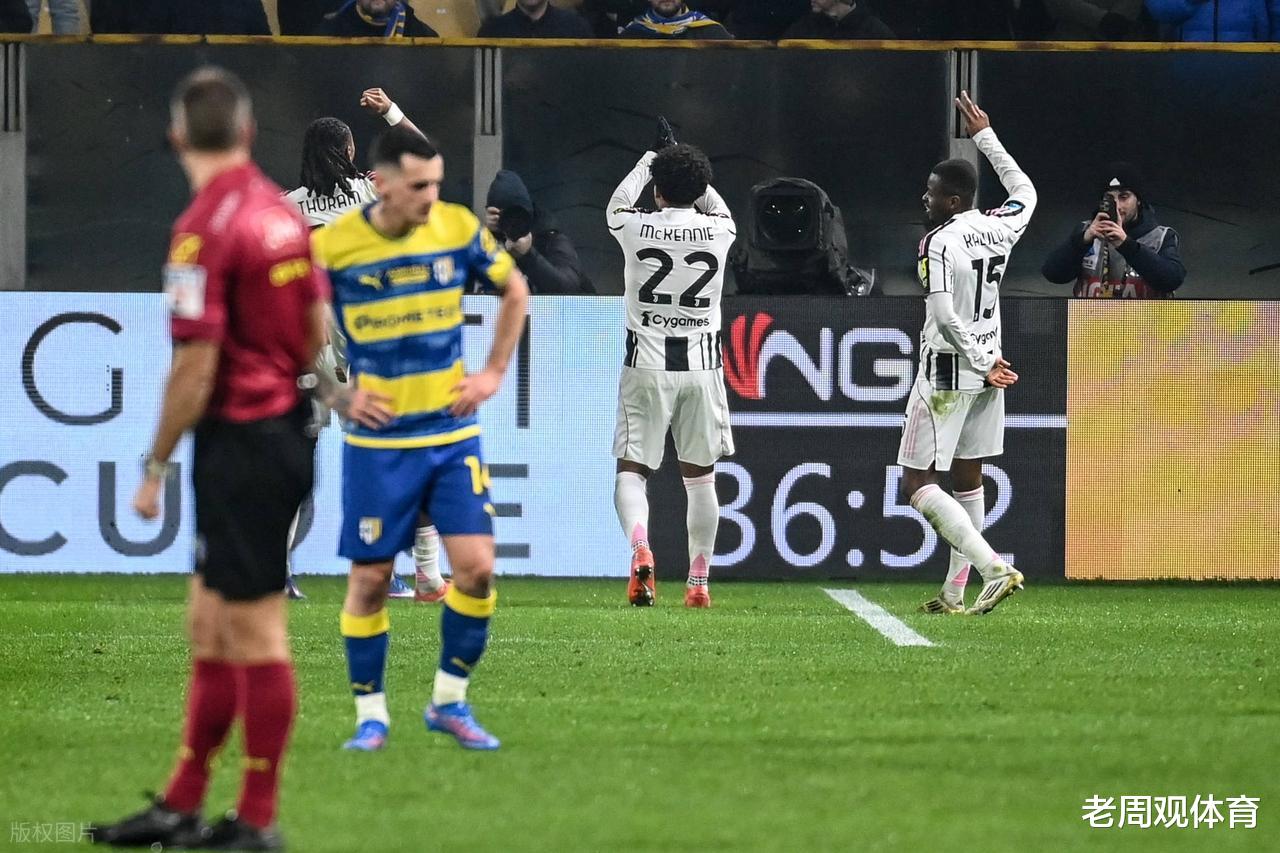 尤文图斯4比1大胜帕尔马,布雷默梅开二度,麦肯尼进球,戴维捡漏,坎比亚索乌龙,积分稳居欧冠区