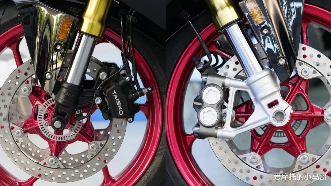 其实除了500RR的青春版在制动层面拉胯外,其他几款同级别车型都挺给力的,就算是同价位的赛421青春版在制动这块也给配备上了Brembo的四活塞卡钳。