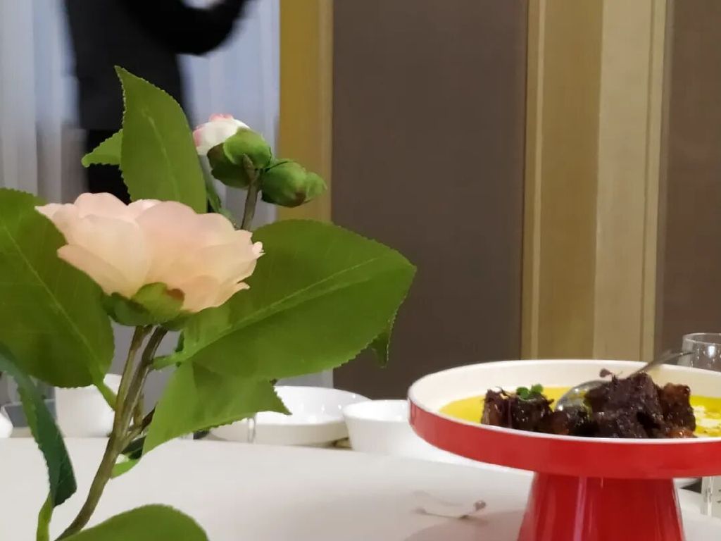 本次摆台所采用的是重庆市市花山茶花苏轼曾有"游蜂掠尽粉丝黄,落蕊犹收蜜露香"的诗句咏山茶花。1986年,山茶花被正式命名为重庆市市花。