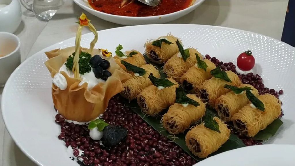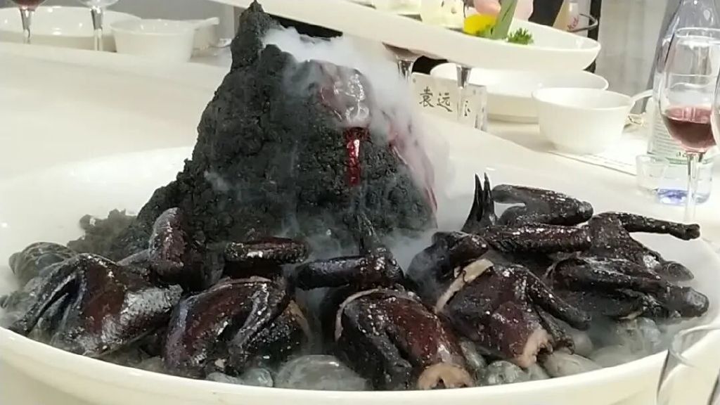 火焰山黑金乳鸽把西游记中的经典场复刻在盘中,厨师真的是好用心。盘中的火焰山脚下,黑金色的乳鸽汁水丰富。它是经过经过秘制卤汁浸润的,吃起带着微麻的花椒味。