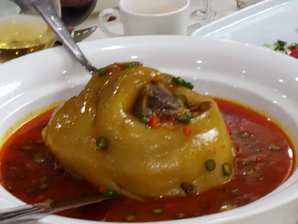 这是一道融合了川味特色的传统菜肴。水豆豉是这道菜的灵魂调料,它咸香浓郁,带有淡淡的辣味和独特的发酵香气,能有效中和肘子的油腻感,使肘子在咸香之中带有微微的辣味,层次丰富。肘子经过长时间的蒸制,肉质变得软烂,入口即化。猪皮部分则呈现出软糯的质感,富有弹性,每一口都能感受到肉质的细腻与醇厚。