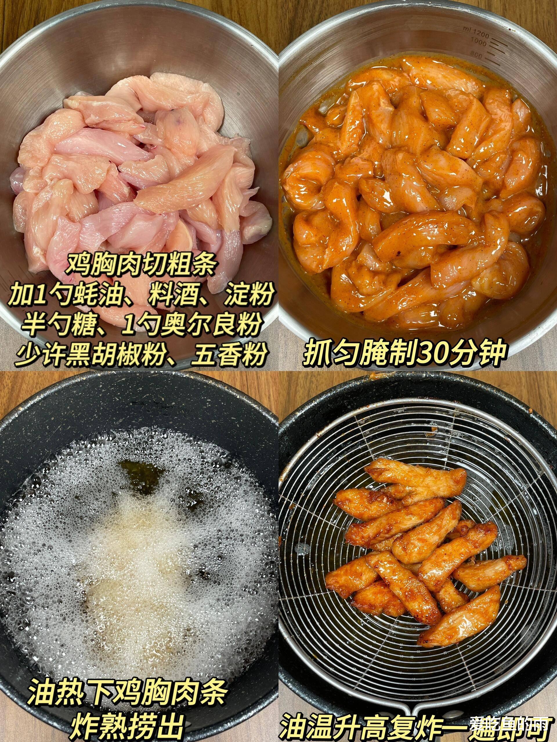做这道菜,选肉是第一道关卡。别图省事用鸡胸肉,那炸出来跟柴禾棒似的,得挑鸡腿肉,去皮去骨,切成手指粗细的条。这肉有筋有油,炸完才嫩得像豆腐。腌制才是重头戏,超市里随手买的奥尔良腌料是基础,但得加点料酒去腥,生抽提鲜,最关键的秘密武器是一勺蜂蜜,这是让鸡柳炸出来红亮诱人、泛着琥珀色光泽的关键。抓匀了得腌够俩小时,我以前急着吃只腌二十分钟,结果咬开里面白花花的没味儿,像在吃白开水煮肉。