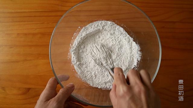 在搅拌盆中加入低筋面粉、细砂糖、食盐、泡打粉,用打蛋器混合均匀。将黄油切成细小的块状,加入混合的粉类中,用双手将黄油面粉搓成细小的颗粒。如果制作的量多可以用绞肉机代替手搓,量少就算了,可能手搓完了机器还没洗好。