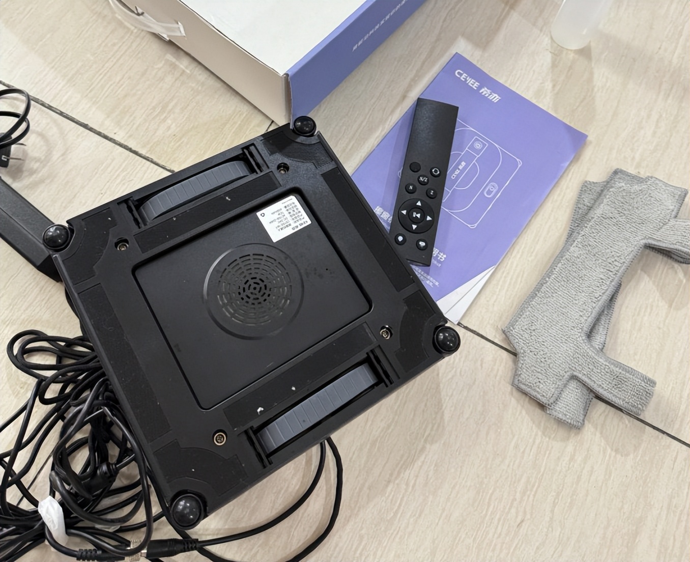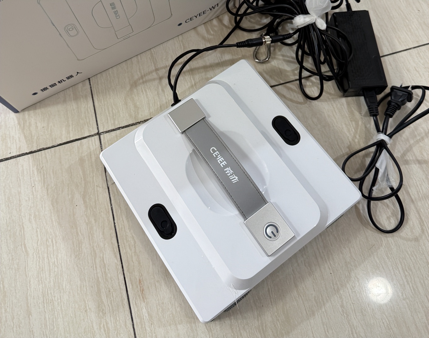 使用体验:机身操作面板做得简洁直观,只有启动和模式切换两个按键,家里老人看一遍就能上手操作。工作时噪音控制在 55dB 以下,相当于日常说话的音量,即使在客厅清洁,旁边看电视也不会被打扰。机身重量适中,女生举到高处玻璃吸附时也不费力,用完收纳在柜子角落不占地方。