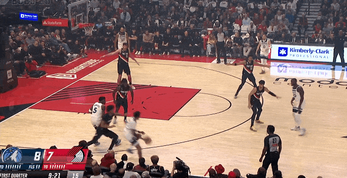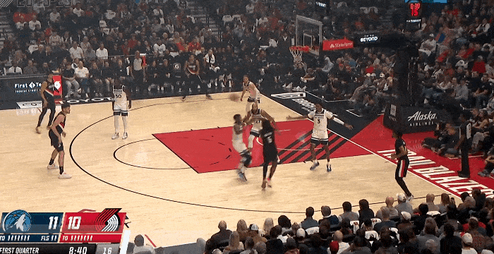 NBA常规赛,开拓者对阵森林狼的比赛正在进行中。