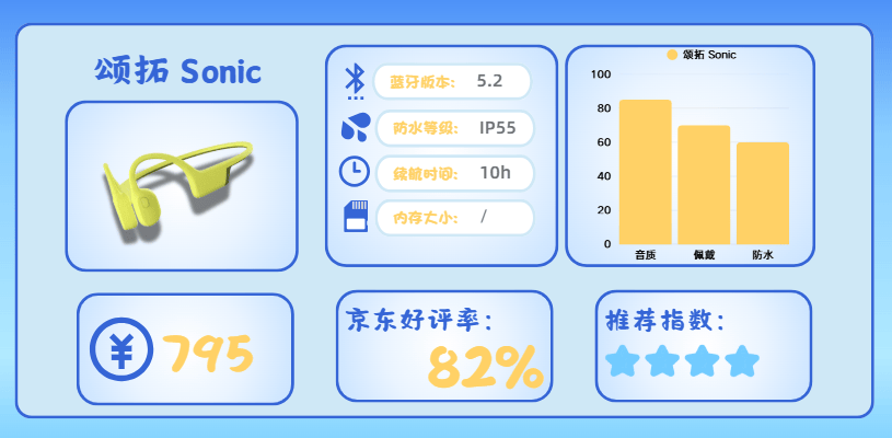 在骨传导入门级别的耳机里,Runner CC4可以说是没有对手,全方位的配置都向中高端骨传导耳机看齐,绝对是入门首选。