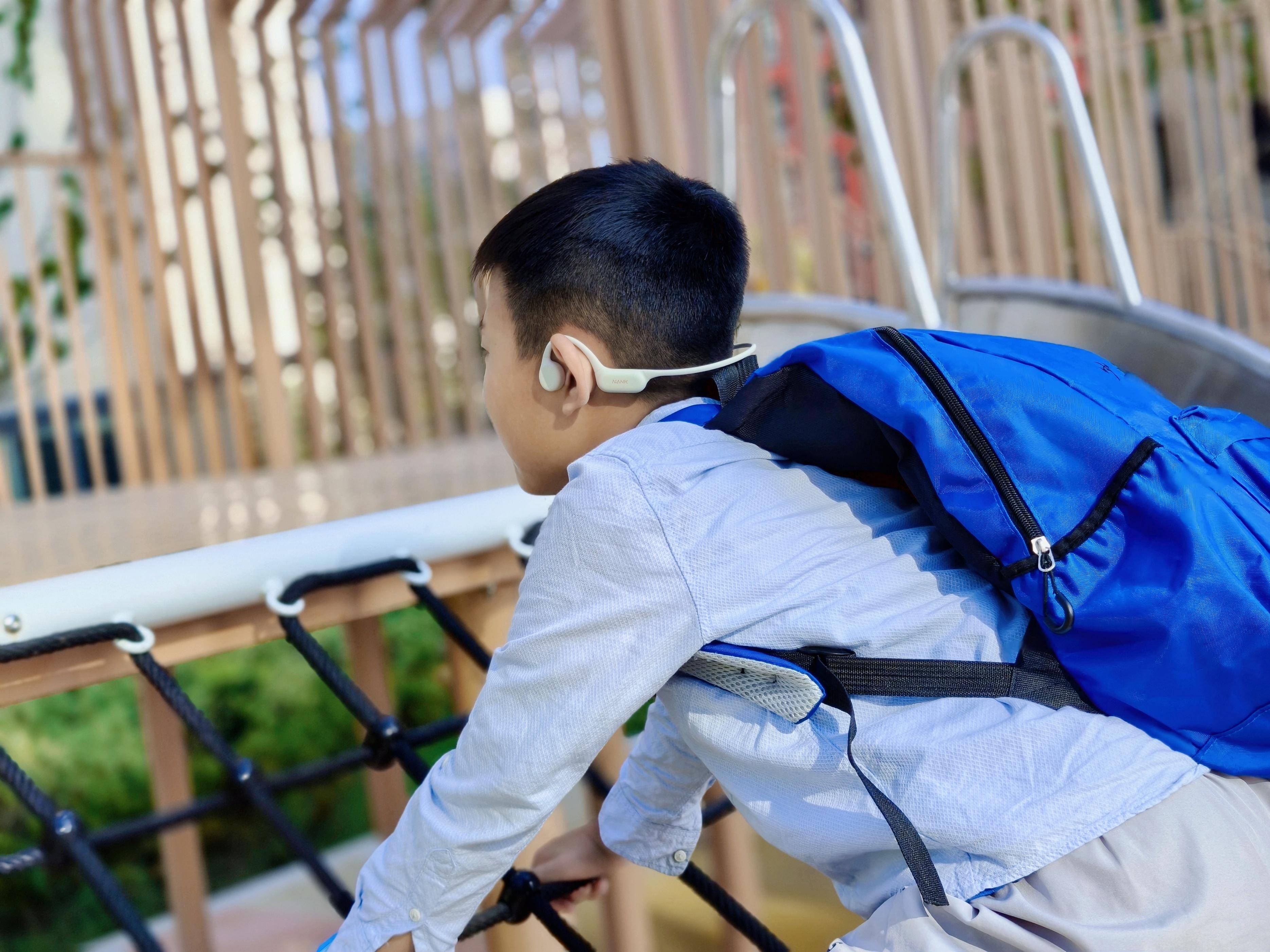 佩戴上充分考虑入门用户:整机25g比多数骨传导轻10%-15%,耳挂采用航空级亲肤硅胶,贴合弧度经1500+人次亚洲耳型数据优化,能精准卡在耳甲腔,戴眼镜用户也可轻松适配,日常佩戴常让人忘记其存在,连续使用5小时无耳部压迫感。