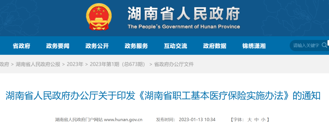 从2023年1月1日起,湖南省实施《湖南省职工基本医疗保险实施办法》。