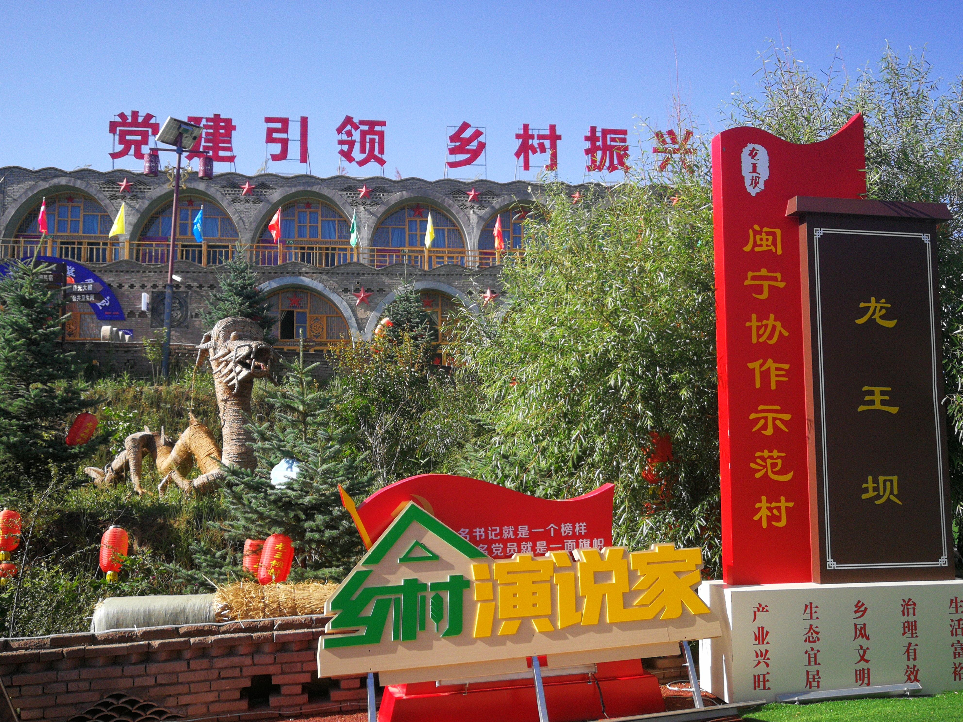 龙王坝村位于固原市西吉县吉强镇,地处六盘山脚下,在火石寨国家地质公园、党家岔震湖及将台堡红军长征胜利会师地3个景点之间。这个昔日的贫困村,如今成为集生态休闲、民俗体验、三农乐园、研学旅行于一体的乡村旅游休闲村庄,建成了百亩梯田、高山观光温室果蔬园、窑洞宾馆、乡村科技馆等,获评全国乡村旅游重点村,年接待游客30万人次。