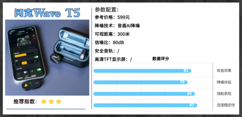 闪克Wave T5主打智能便携,8.6克轻量化发射器搭配磁吸、背夹、项链三种佩戴方式,夹在衣领上几乎无感,长时间录制无负担。