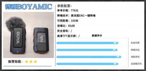 但磁吸在厚衣物或剧烈运动时易移位,全包防风套会遮挡按键影响操作。强降噪模式偏激进,会牺牲部分环境细节与人声自然感,听感稍显干涩。300米标称传输距离受遮挡影响明显,实际可靠距离更短,强风环境仍需额外防护。整体性价比突出,更适合中小型团队或进阶创作者,纯入门用户无需为多机位功能支付溢价。