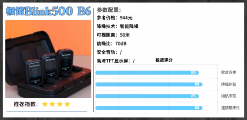 枫笛Blink500 B6主打一拖二双人收音,34g发射器搭配鳄鱼领夹,夹在衣领上安装便捷,自带内置麦克风还可外接专业领夹麦,适配多场景。