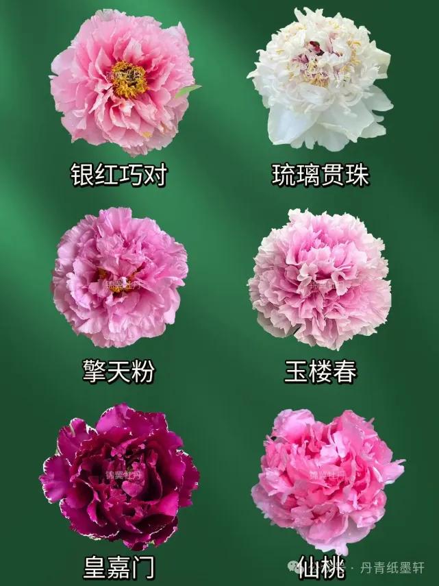 二、粉色系(娇艳柔美)赵粉 – 粉中带白,皇冠型,瓣质柔软,清香,生长旺盛,为“四大名品”之一。鲁粉 – 粉蓝色,荷花型或皇冠型,花大色雅,产于山东。粉中冠 – 粉红色,皇冠型,外瓣大,内瓣细碎,形似冠。雪映桃花 – 浅粉色,花瓣基部有紫红斑,形似桃花映雪,清丽。贵妃插翠 – 粉红色,千层台阁,顶瓣绿色(“插翠”),名贵品种。
